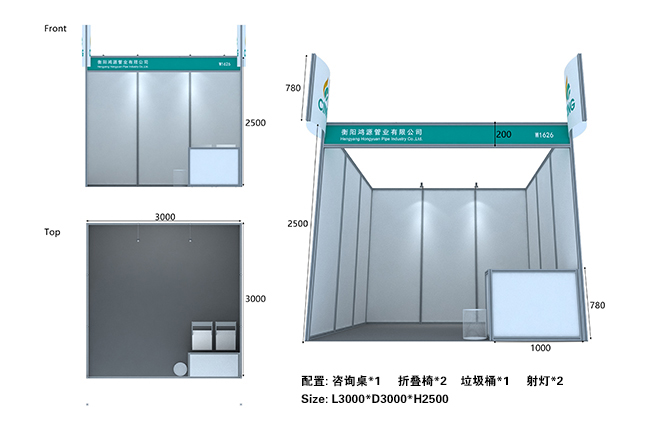 ◆地毯 ◆三面围板 ◆公司名称楣板 ◆咨询桌一张 ◆椅子两把 ◆射灯两盏 ◆电源插座一个 ◆(特殊用电请事先说明,另行收费) |