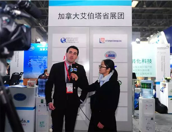 加拿大艾伯塔省展团在展会现场接受记者采访