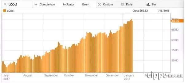 2018年,国际油价的亮眼表现还在持续。截至1月16日,2月交割WTI原油期货价格也一路上涨,达到64.5美元/桶,3月交割的布伦特原油期货价格一度涨破70美元/桶,双双创下三年以来的较高水平。