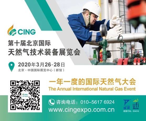 2020年3月26-28日,第十届北京国际天然气技术装备展览会(CING)将在北京中国国际展览中心举办(顺义新馆)。65个国家和地区1800家展商,46家世界500强企业,18大国家展团,12万人次专业观众,展出面积9万平米。
