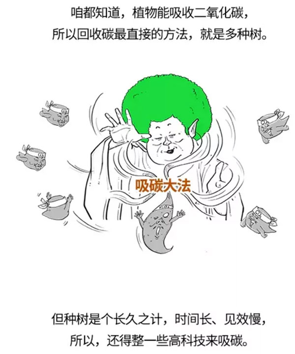 计划生育年代,国家鼓励少生孩子多种树!现在国家鼓励的是多生孩子多种树!但是光靠种树是解决不了问题的,还需要高科技!那就是二氧化碳捕集与封存技术,先收集二氧化碳,再分离出碳,最后集中封存。