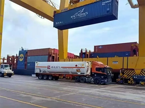 第一批LNG罐式集装箱于今年3月25日从民都鲁港出发,已运抵中国山东龙口港。