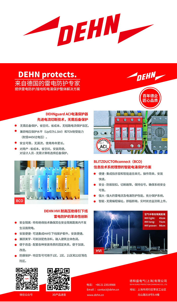 一百多年来DEHN 一直为防雷和电涌防护提供可靠的产品和方案,保证用户的系统及设备安全运行。